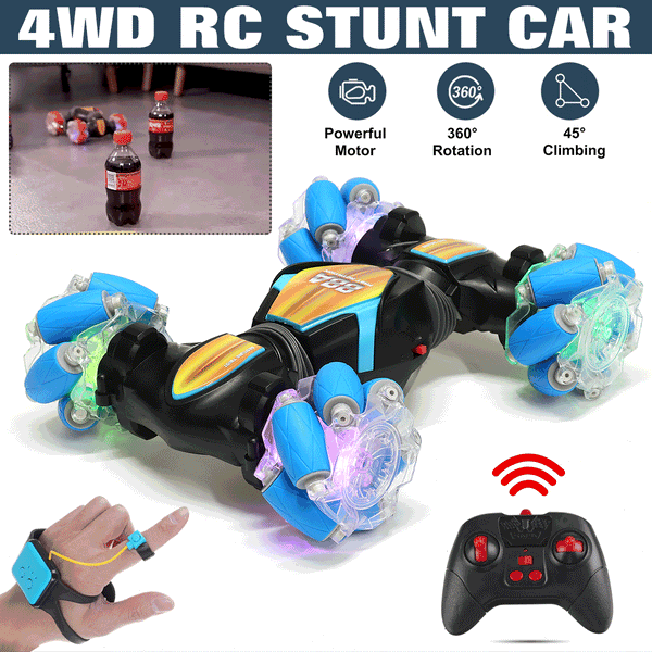 * Two Modes of Controlling: One mode is put the watch on your hand and control the stunt car by change your hand gesture, the other is use the remote controller to keep the car driving as you want. This car brings its owner to a new level of RC fun.