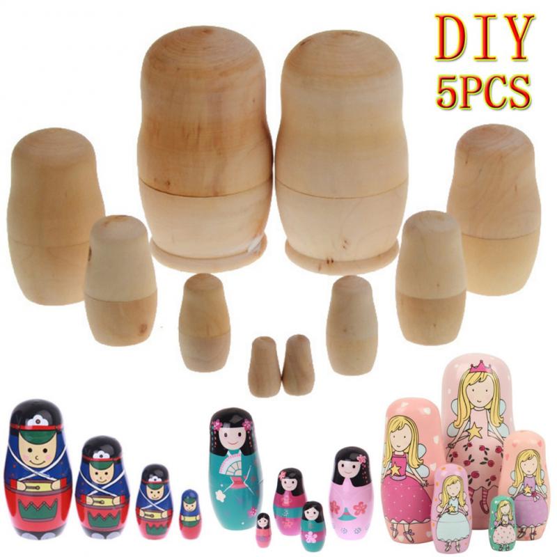 5pcs/set Wooden DIY Blank Painting Doll Toys