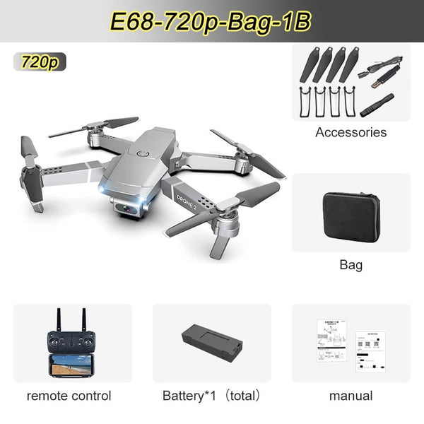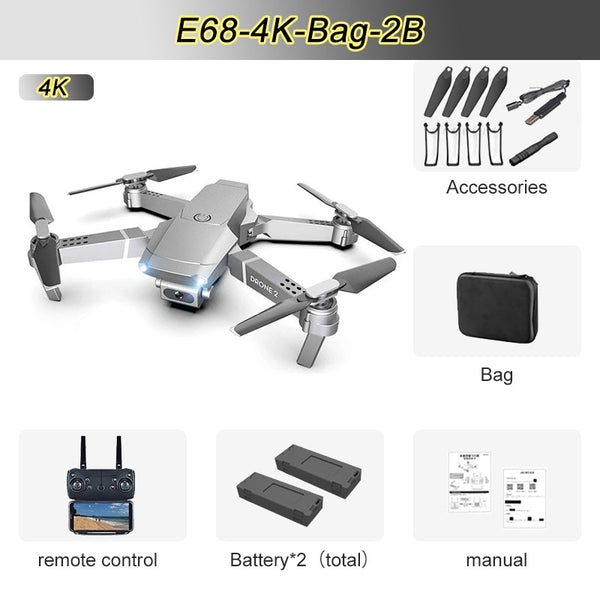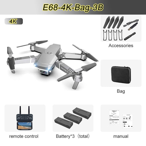 JINHENG E68 Mini RC Drone 4K 1080P HD Camera Wifi FPV Air Pressure Altitude Hold Mode Foldable Quadcopter Toy Kid's Gift
