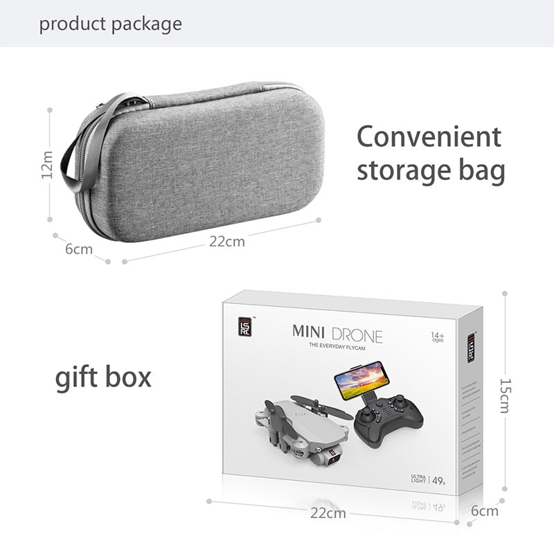Functions: up / down, forward / back, left / right turn, side flight, LED light, headless mode, one-button auto return, altitude hold mode, WiFi FPV