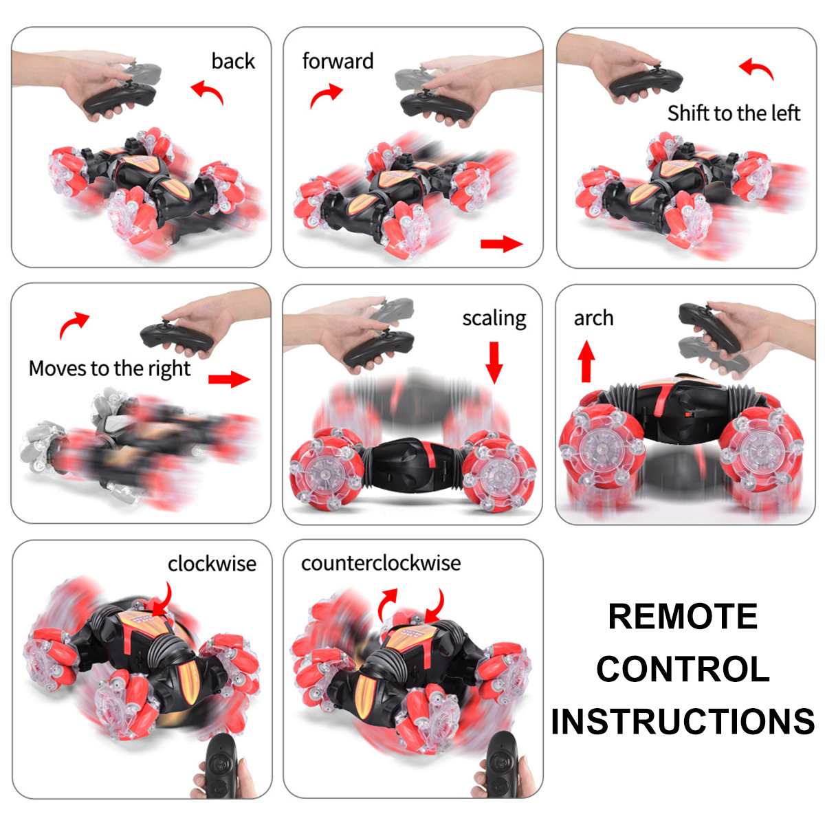 4WD 2.4G Stunt RC Car 360°Rotation Drift Gesture Induction Control Car Twisting Off-road Vehicle with Light Music Drift Toy Gift