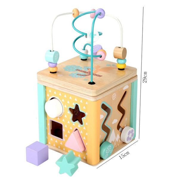 Baby Wooden Montessori Toys Around Bead Maze Shape Recognition Cartoon Clock Learning And Educational Math Toys For Kids