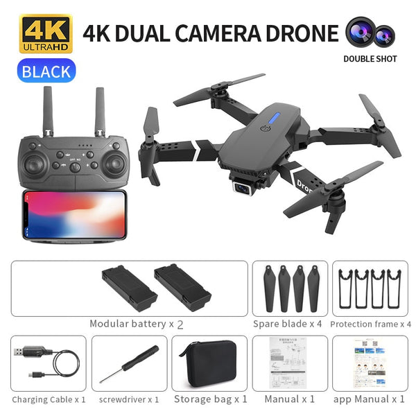 New drone E88 4k professional wide-angle HD camera 1080P WiFi fpv height Hold Foldable RC quadrotor helicopter children's toys
